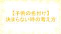 家計・暮らし 【子供の名付け】決まらない時の考え方