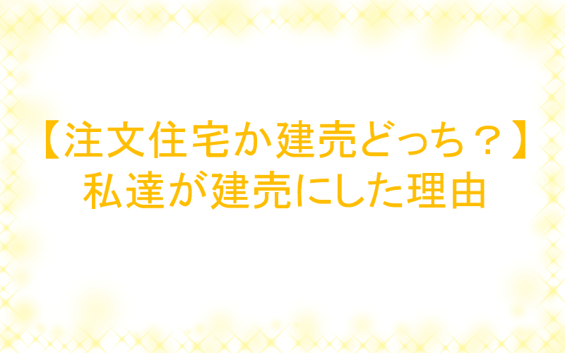 今回は私が家を検討した際に、建売に決めた理由を書いていこうと思います。